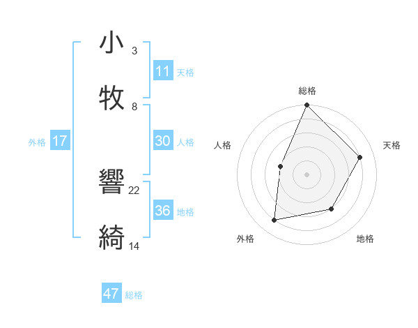 小牧 響綺さんを姓名の画数から五運を鑑定