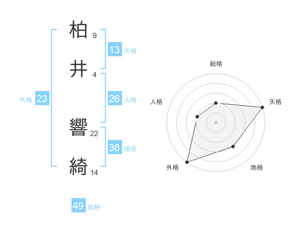 柏井 響綺さんの総格は49画の2点!