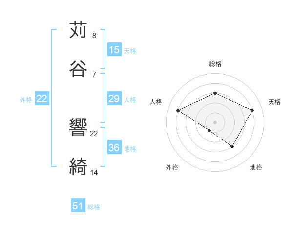 苅谷 響綺さんを姓名の画数から五運を鑑定