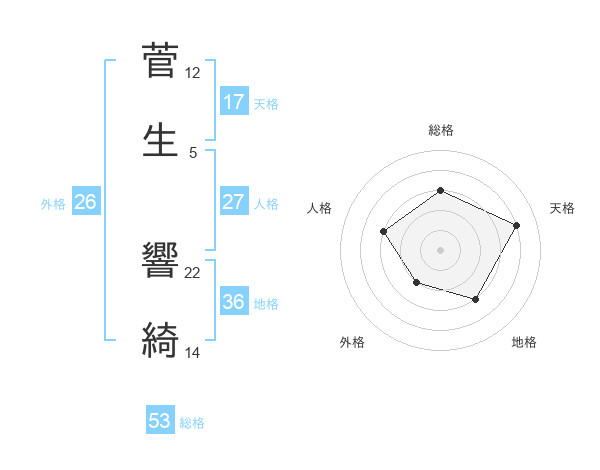 菅生 響綺さんを姓名の画数から五運を鑑定
