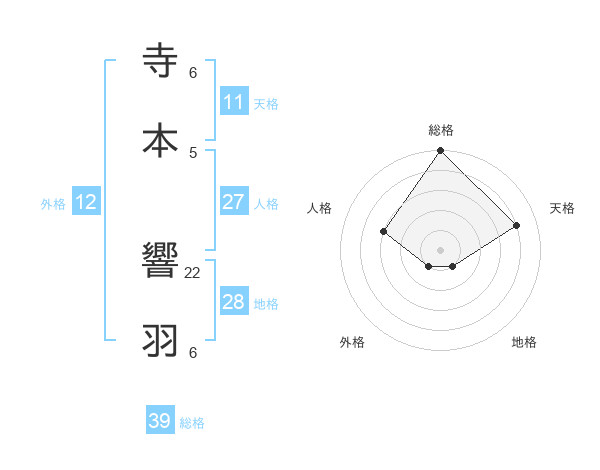 寺本 響羽さんを姓名の画数から五運を鑑定