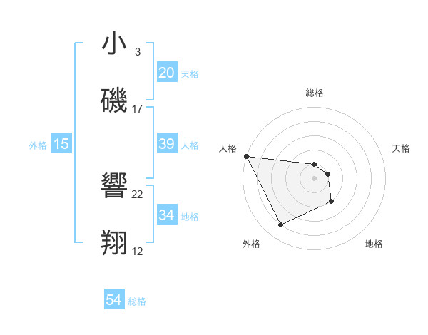 小磯 響翔さんを姓名の画数から五運を鑑定