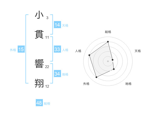 小貫 響翔さんを姓名の画数から五運を鑑定