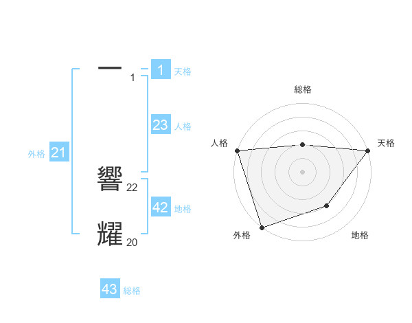 一 響耀さんの外格は21画の5点!