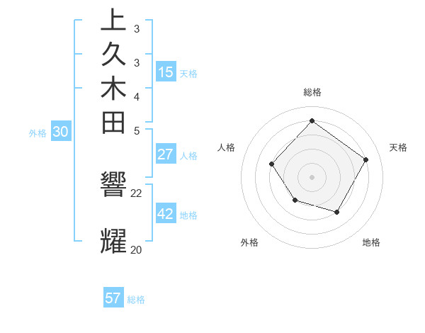 上久木田 響耀さんを姓名の画数から五運を鑑定