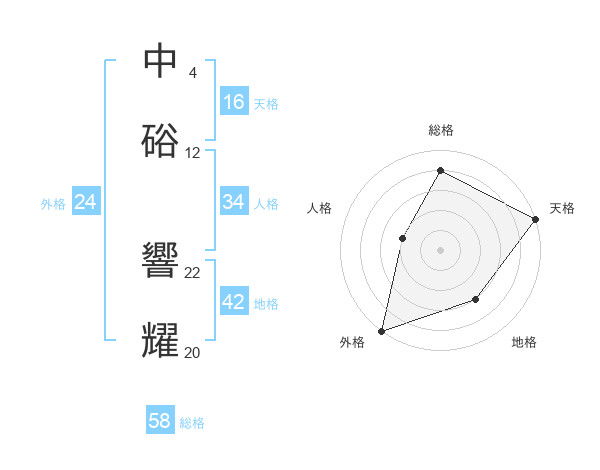 中硲 響耀さんを姓名の画数から五運を鑑定