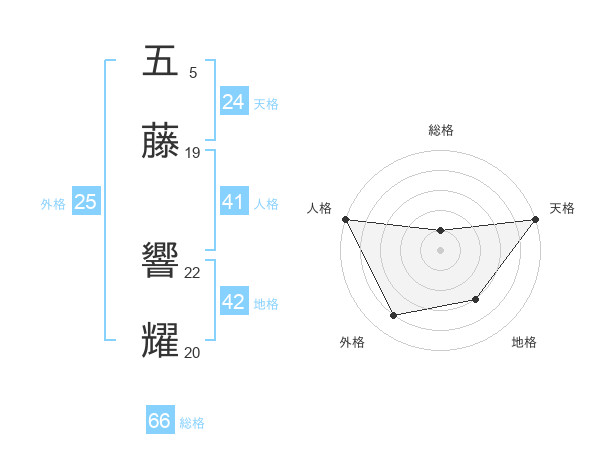 五藤 響耀さんの天格は24画の5点!