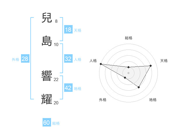 兒島 響耀さんの総格は60画の1点!