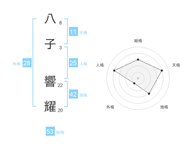 八子 響耀さんを姓名の画数から五運を鑑定