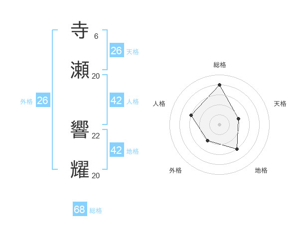 寺瀬 響耀さんの総格は68画の4点!