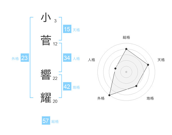 小菅 響耀さんを姓名の画数から五運を鑑定