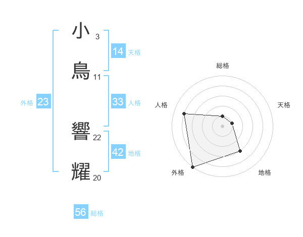 小鳥 響耀さんを姓名の画数から五運を鑑定