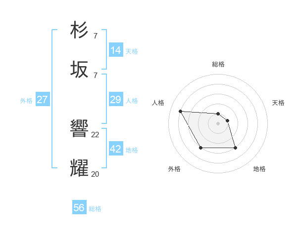 杉坂 響耀さんの総格は56画の1点!