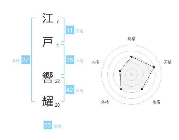 江戸 響耀さんを姓名の画数から五運を鑑定