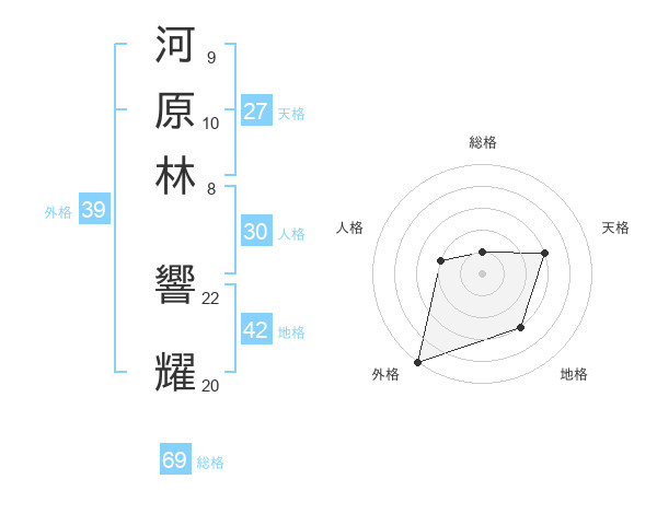 河原林 響耀さんを姓名の画数から五運を鑑定
