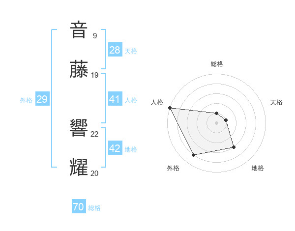 音藤 響耀さんの外格は29画の4点!