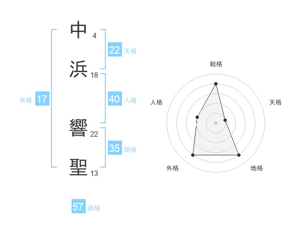 中浜 響聖さんの総格は57画の4点!