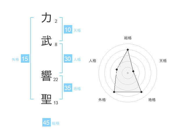 力武 響聖さんの総格は45画の4点!