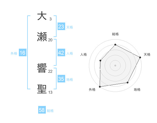 大瀬 響聖さんを姓名の画数から五運を鑑定