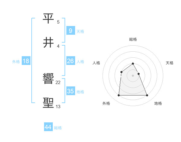 平井 響聖さんの総格は44画の2点!
