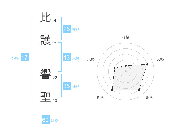 比護 響聖さんの天格は25画の4点!