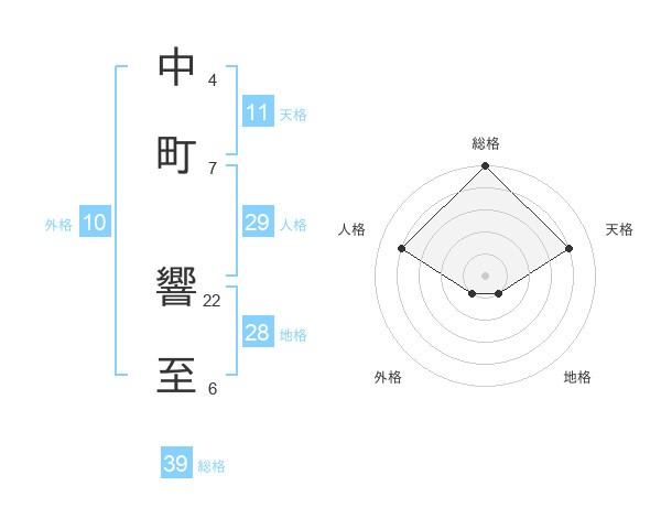 中町 響至さんの総格は39画の5点!