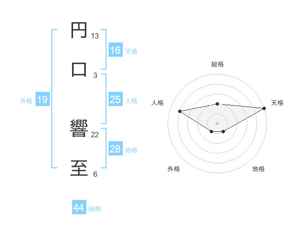 円口 響至さんの天格は16画の5点!