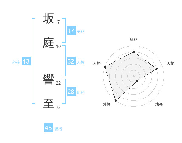 坂庭 響至さんの総格は45画の4点!