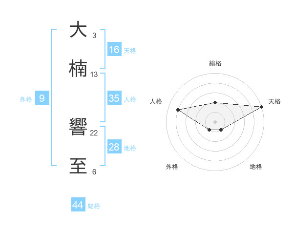 大楠 響至さんの総格は44画の2点!