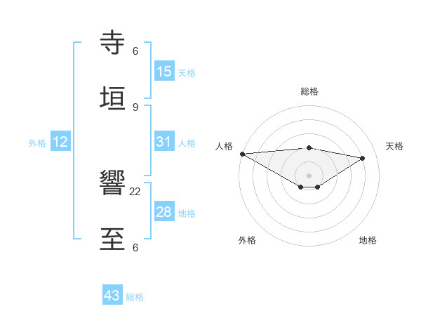 寺垣 響至さんの人格は31画の5点!
