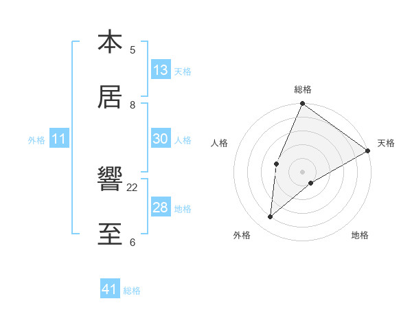 本居 響至さんの総格は41画の5点!