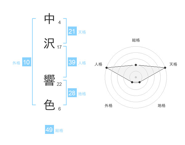 中沢 響色さんの天格は21画の5点!
