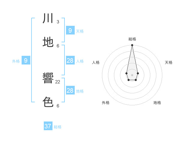 川地 響色さんの総格は37画の5点!