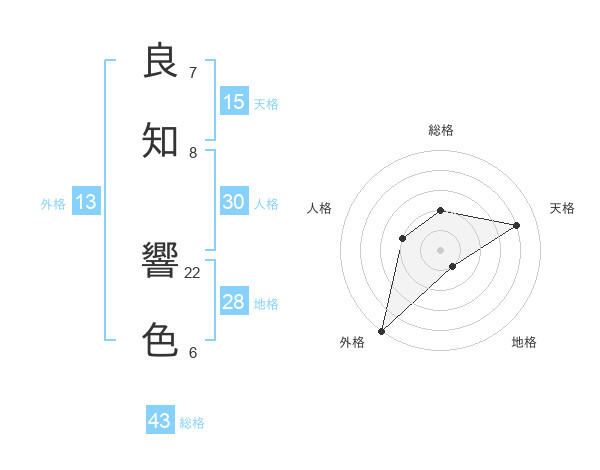 良知 響色さんの総格は43画の2点!