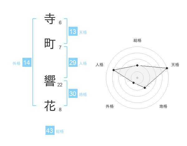 寺町 響花さんを姓名の画数から五運を鑑定