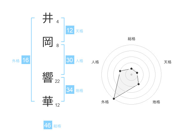 井岡 響華さんの総格は46画の1点!