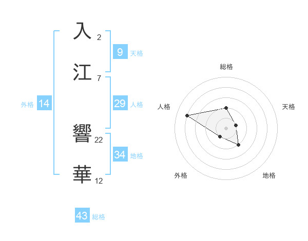 入江 響華さんの総格は43画の2点!