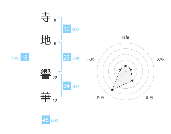 寺地 響華さんの総格は46画の1点!