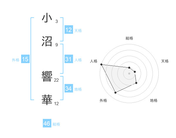 小沼 響華さんの総格は46画の1点!