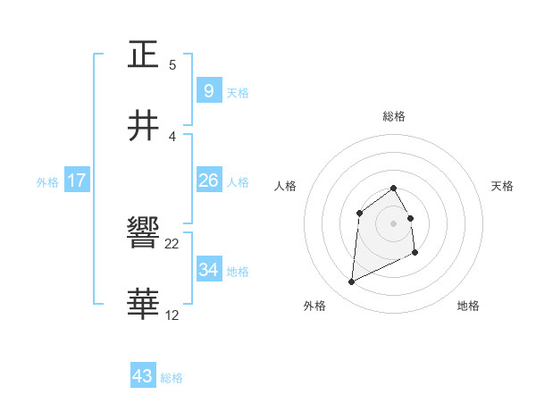 正井 響華さんの外格は17画の4点!
