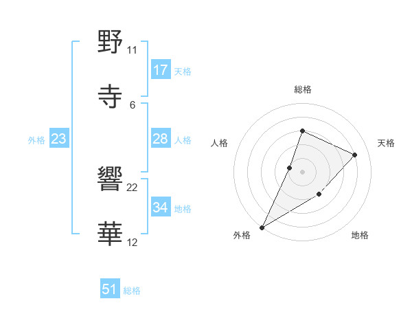 野寺 響華さんの外格は23画の5点!