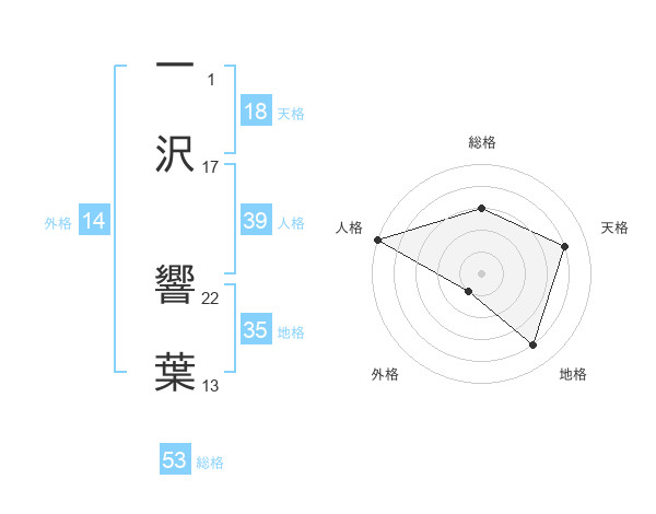 一沢 響葉さんを姓名の画数から五運を鑑定