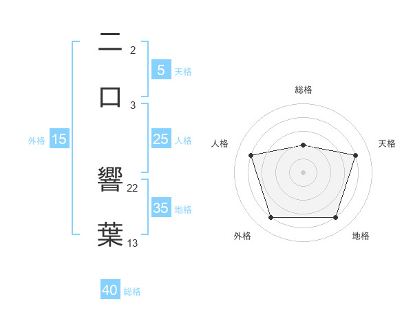 二口 響葉さんの天格は5画の4点!