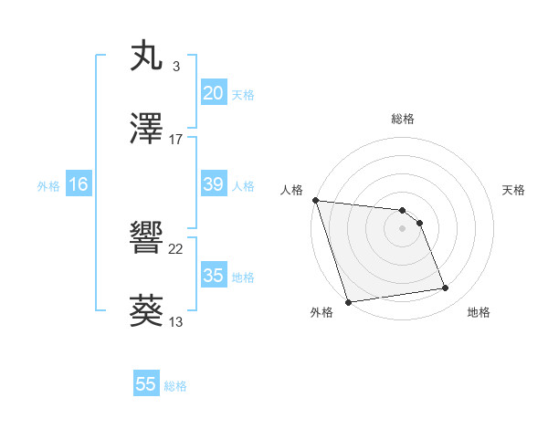 丸澤 響葵さんを姓名の画数から五運を鑑定