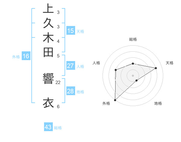 上久木田 響衣さんを姓名の画数から五運を鑑定