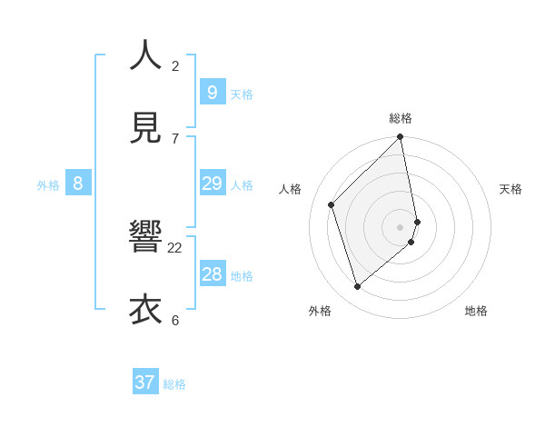 人見 響衣さんの総格は37画の5点!