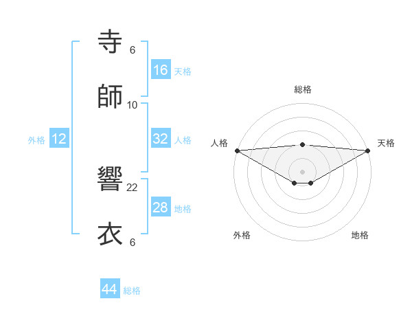 寺師 響衣さんの天格は16画の5点!