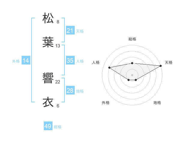 松葉 響衣さんを姓名の画数から五運を鑑定