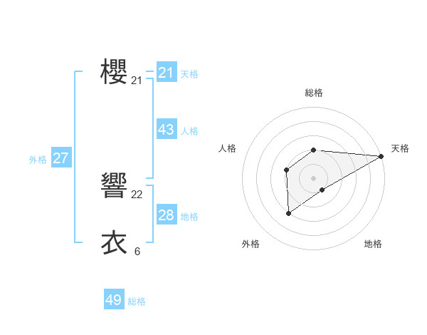 櫻 響衣さんの天格は21画の5点!