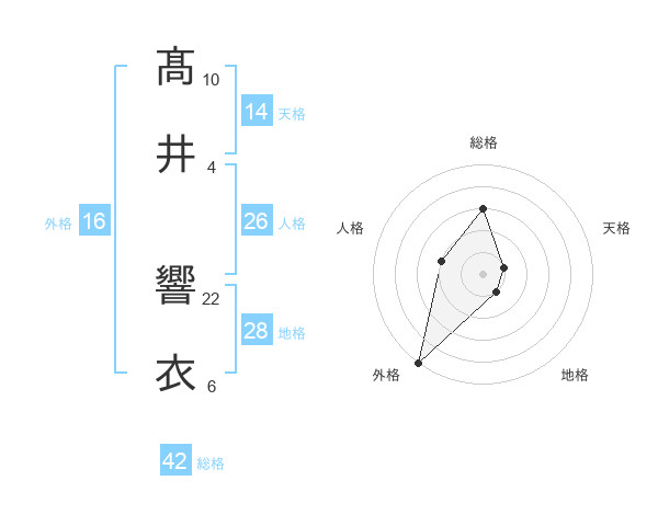 髙井 響衣さんを姓名の画数から五運を鑑定